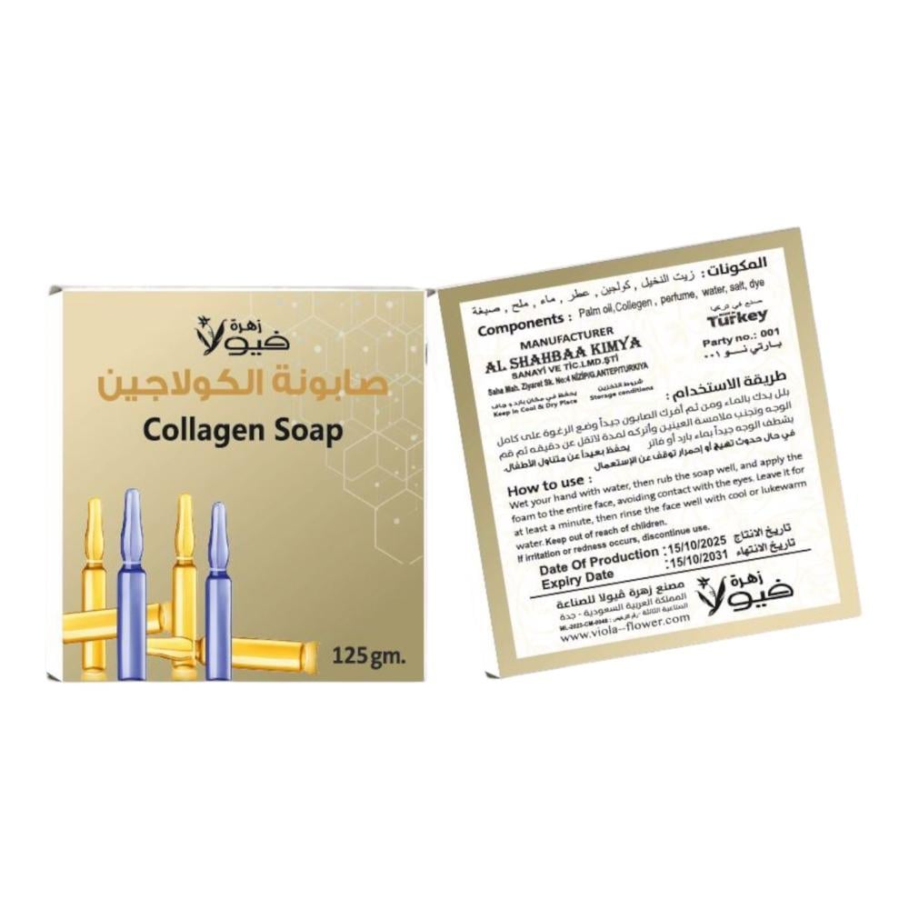 صابونة الكولاجين من متجر فيولا بوزن 125 جرام، تحتوي على الكولاجين البحري الطبيعي الذي يعمل على شد البشرة وتحسين مرونتها، لتبدو أكثر شبابًا ونضارة.