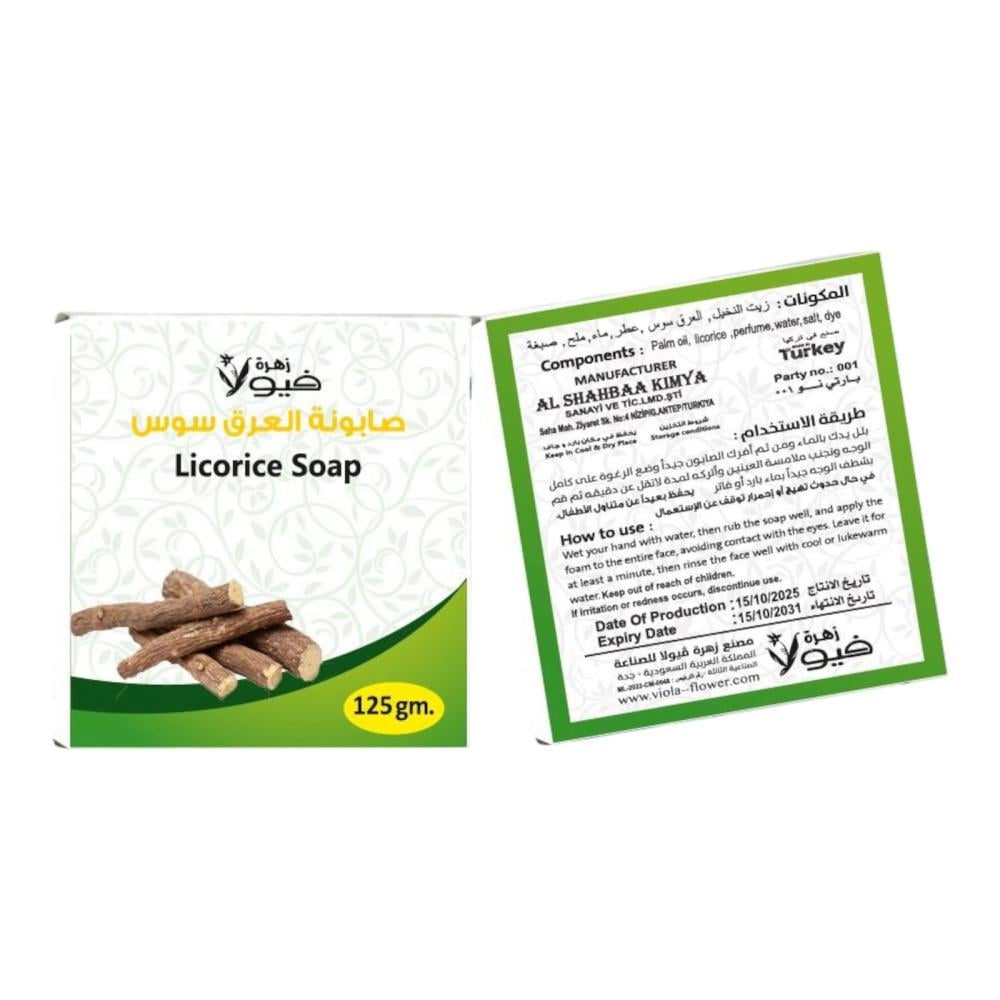صابونة العرقسوس من متجر فيولا بوزن 125 جرام، غنية بخلاصة العرقسوس المعروفة بقدرتها على تفتيح البشرة وتوحيد لونها بلطف. مناسبة للبشرة الحساسة وتمنحها إشراقة طبيعية.